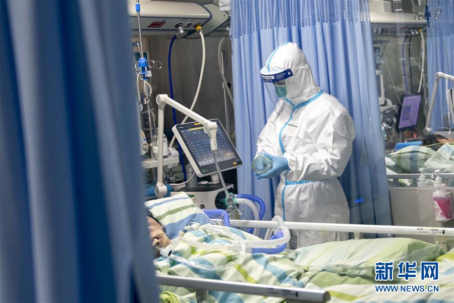 1月24日,武汉大学中南医院重症隔离病房的医护人员对病人进行治疗。新华社记者 熊琦 摄