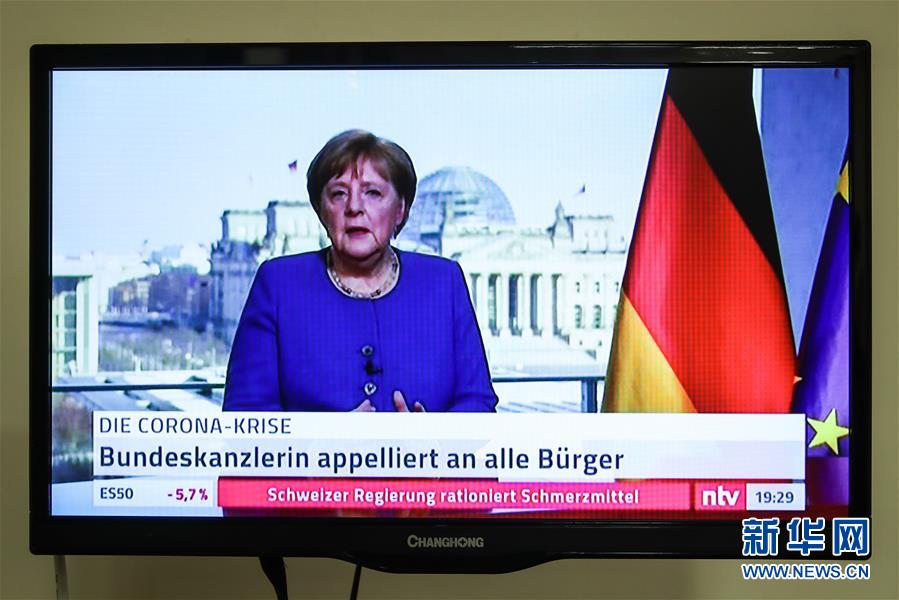 这是3月18日在德国柏林拍摄的德国总理默克尔发表讲话的电视转播画面。 德国总理默克尔18日晚发表电视讲话说,新冠肺炎疫情是德国自二战以来遭遇的最大挑战,她呼吁民众严格遵守政府出台的限制性措施。 新华社记者 单宇琦 摄 |