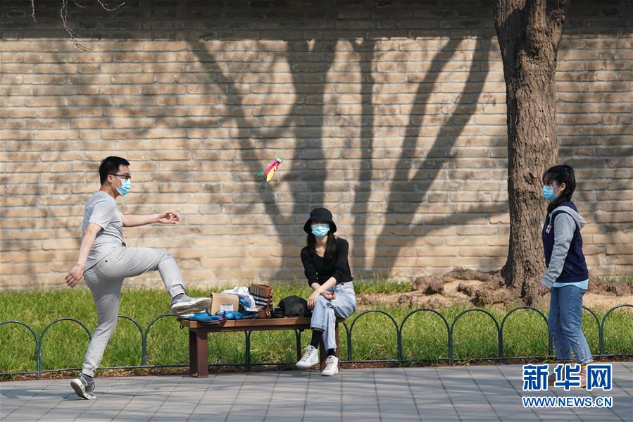 当日是清明节假期,在北京天坛公园内,一些市民游客在做好防护的前提下健身休闲,享受春光。