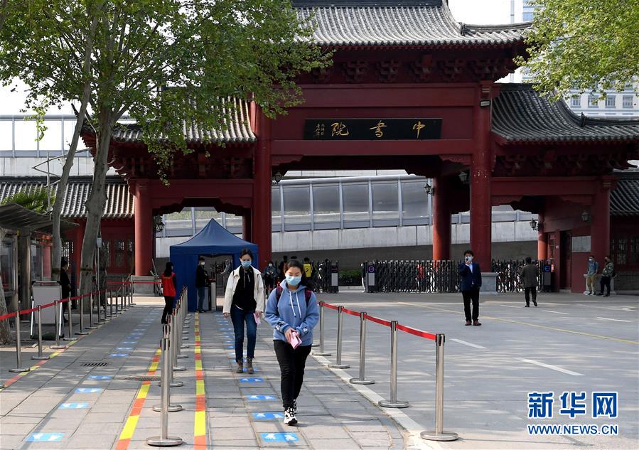 4月7日,郑州市第九中学高三年级学生通过体温检测后走进校园。当日,河南省高三年级开学复课。 新华社记者 李安 摄