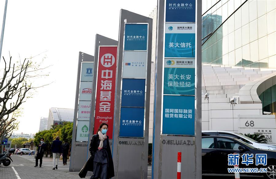 4月9日,行人从上海陆家嘴金融贸易区的建筑物旁走过。新华社记者 陈飞 摄