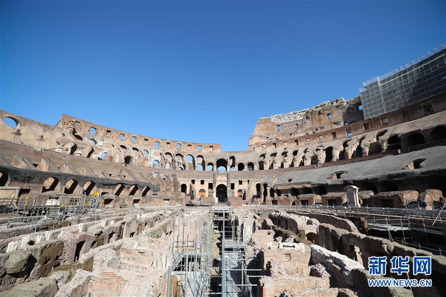 这是6月1日在意大利罗马拍摄的斗兽场内部景观。 当日,罗马斗兽场重新开放。出于防疫原因,参观者在入场时被要求戴上口罩、测量体温并进行手部消毒。 新华社记者 程婷婷 摄