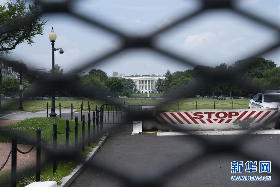这是6月6日拍摄的美国华盛顿白宫。由于担心发生骚乱,白宫周围已竖起了黑色围栏。 当地时间6日,乔治·弗洛伊德之死引发的集会和示威继续在全美多个城市举行。尽管弗洛伊德已离世近两周,多地抗议规模依然庞大。 新华社记者 刘杰 摄