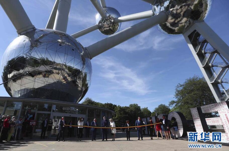 6月1日,在比利时布鲁塞尔,嘉宾们出席原子球塔重新开放仪式。 随着比利时新冠疫情趋缓,比利时标志性建筑——原子球塔当日重新面对游客开放。 新华社记者 郑焕松 摄