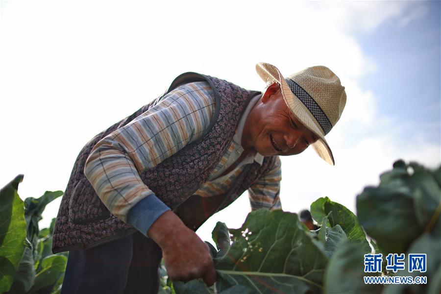 8月6日,村民在威宁县草海镇中海社区蔬菜基地种植西兰花。新华社记者 刘续 摄