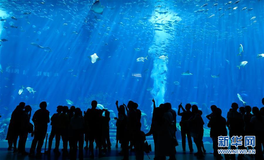 游客在三亚亚特兰蒂斯酒店内的水族馆游玩(8月6日摄)。新华社记者 杨冠宇 摄