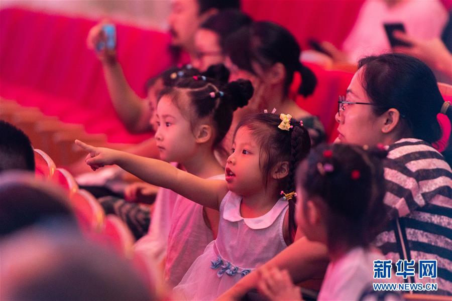 8月11日,在湖南省文化馆,小朋友和家长一起观看京剧演出。 当日,湖南省文化馆携手湖南省京剧保护传承中心举办“京剧艺术普及暑期惠民演出”活动。演出寓教于乐,不仅丰富广大少年儿童的暑期生活,还让他们从中学习到京剧的相关知识。 新华社记者 陈思汗 摄