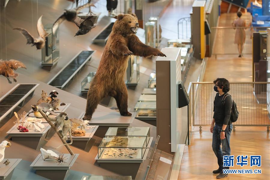9月15日,在比利时布鲁塞尔的比利时皇家自然科学博物馆,一名男子参观动物标本。新华社记者 郑焕松 摄