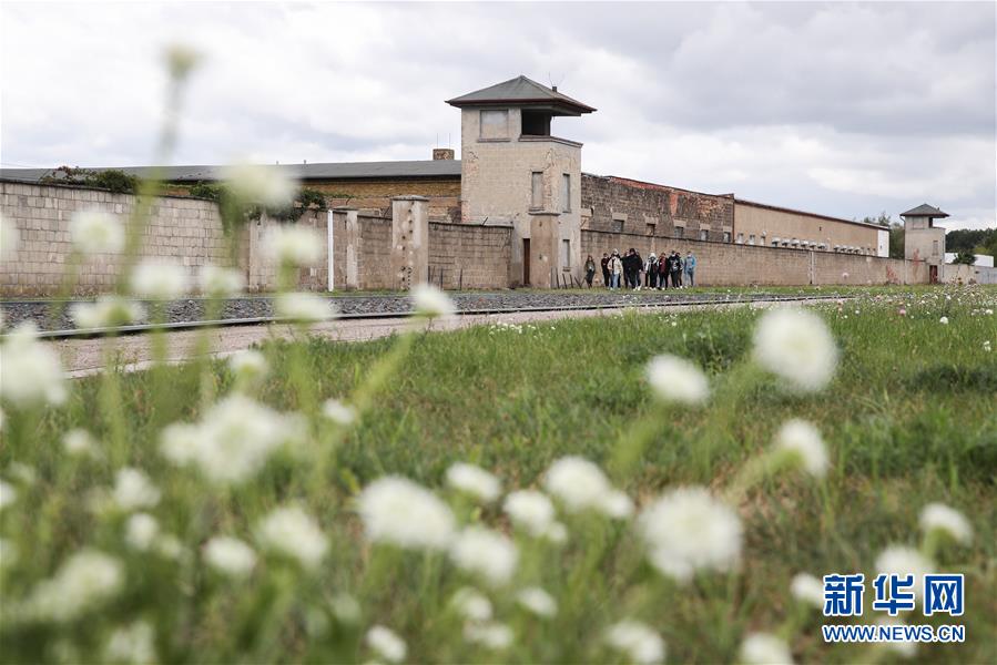 这是8月27日,在德国柏林以北的小城奥拉宁堡,参观者在萨克森豪森集中营营区参观。 柏林以北的小城奥拉宁堡有一片空地,四周的水泥高墙和铁丝网隔绝了大自然的生机。空地入口铁门上的“劳动带来自由”提醒着人们,这里曾是一座集中营。这里就是萨克森豪森,距离首都柏林最近的集中营。1936年到1945年,共有22万人被关押在此,10万人遇害。75年前,苏联红军解放了萨克森豪森集中营,之后这里成为纪念馆,向世人展示纳粹德国罪行的铁证。 新华社记者 单宇琦 摄