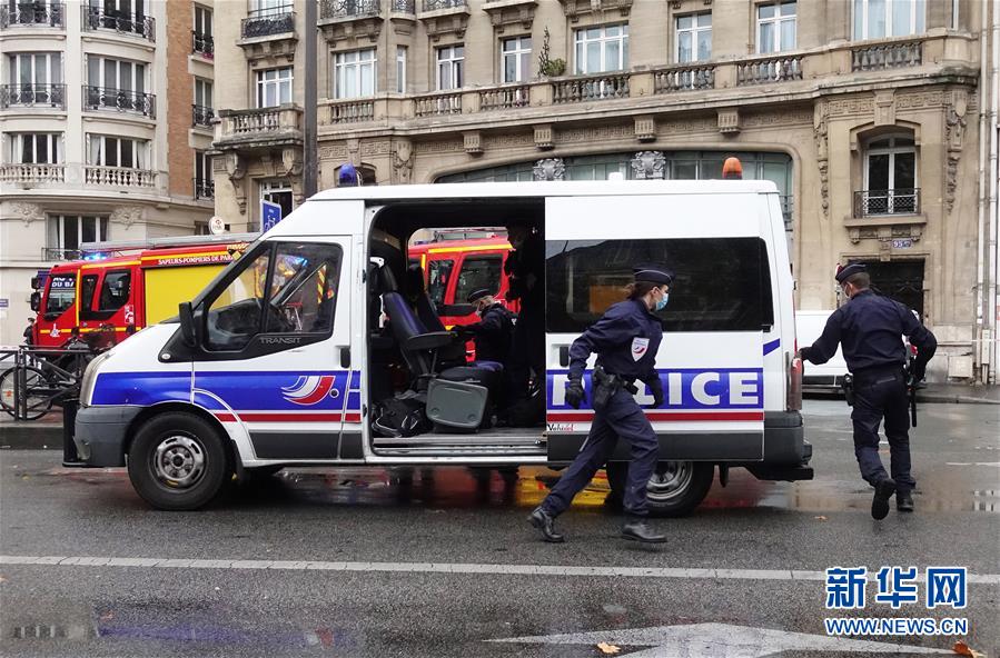 9月25日,警察在法国巴黎的伤人事件发生地附近展开工作。 巴黎十一区25日上午发生持刀伤人事件,至少2人受伤。 新华社记者 高静 摄