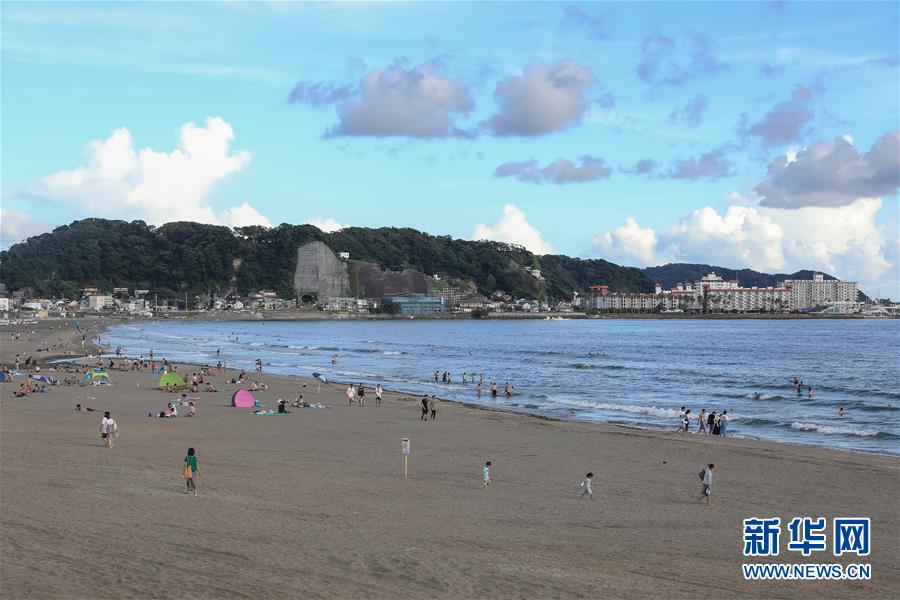 镰仓位于日本神奈川县,三面环山一面临海,是一座有着近千年历史的古城,曾是日本首个武士政权“镰仓幕府”所在地。众多的历史遗迹以及充满现代气息的海滨浴场和各类商铺,让镰仓成为一座拥有多元魅力的城市。如今,这座兼具自然之美与文化气息的古都是日本著名的旅游胜地之一。 2020年8月27日,人们在日本镰仓的海滩上休闲。 新华社记者 杜潇逸 摄