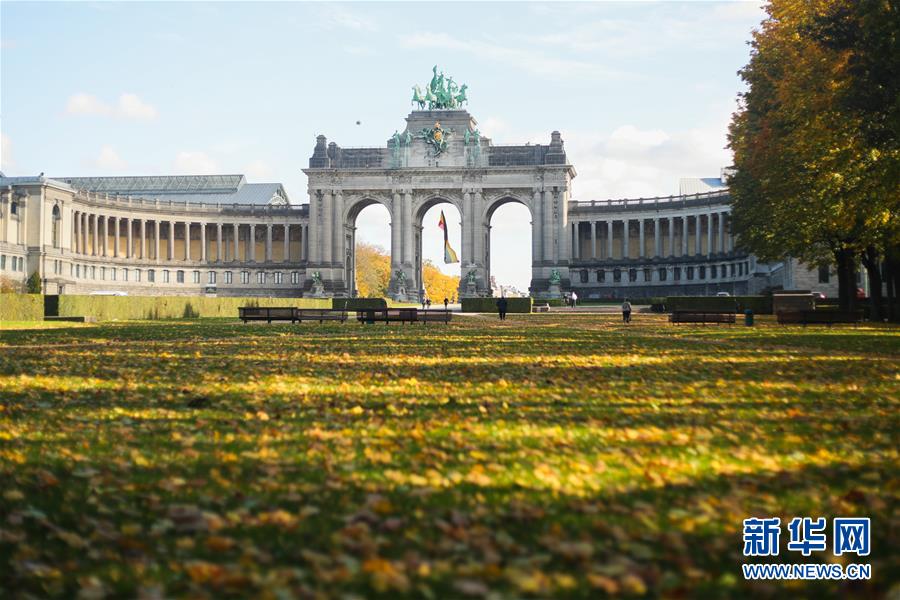 10月21日,比利时布鲁塞尔的五十周年纪念公园的草地上落满了树叶。 时下的比利时首都布鲁塞尔正值秋季,景色迷人。 新华社记者 郑焕松 摄