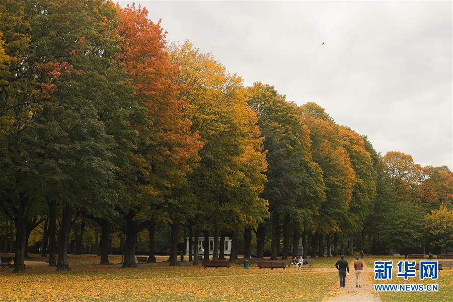 10月21日,人们在比利时布鲁塞尔的五十周年纪念公园散步。 时下的比利时首都布鲁塞尔正值秋季,景色迷人。 新华社记者 郑焕松 摄