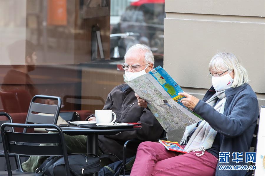 10月24日,在德国首都柏林,佩戴口罩的游客在一家咖啡厅外休息。 德国疾控机构罗伯特·科赫研究所24日公布的数据显示,截至当天零时,德国较前一日新增新冠确诊病例14714例,累计确诊418005例;新增死亡49例,累计死亡10003例。 新华社记者 单宇琦 摄
