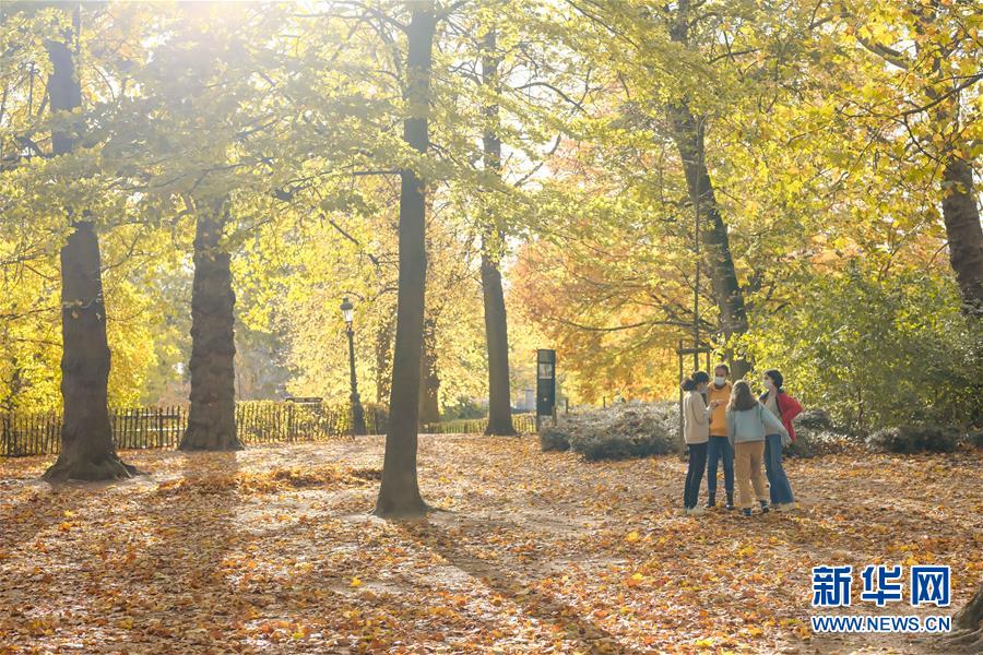 10月26日,人们在比利时布鲁塞尔的利奥波德公园欣赏秋景。 深秋时节,比利时首都布鲁塞尔景色怡人。 新华社记者 张铖 摄
