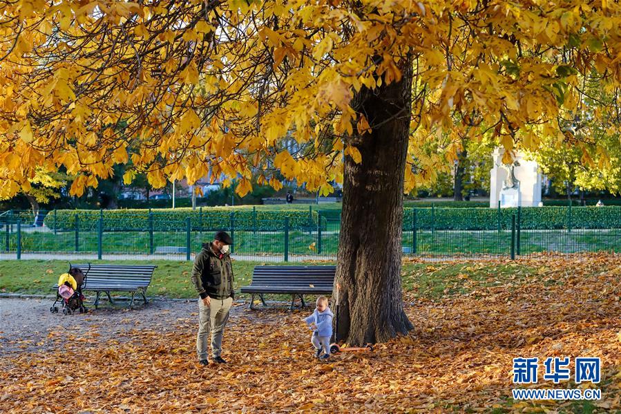10月23日,小朋友在比利时布鲁塞尔一处公园玩耍。 深秋时节,比利时首都布鲁塞尔景色怡人。 新华社记者 张铖 摄