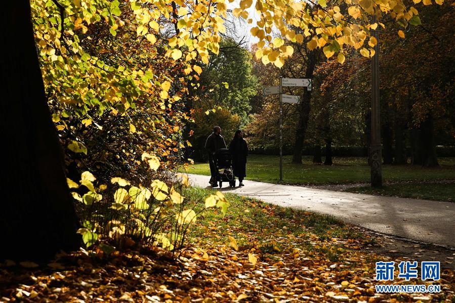 这是10月28日在德国首都柏林一座公园内拍摄的两名行人。 新华社记者 单宇琦 摄