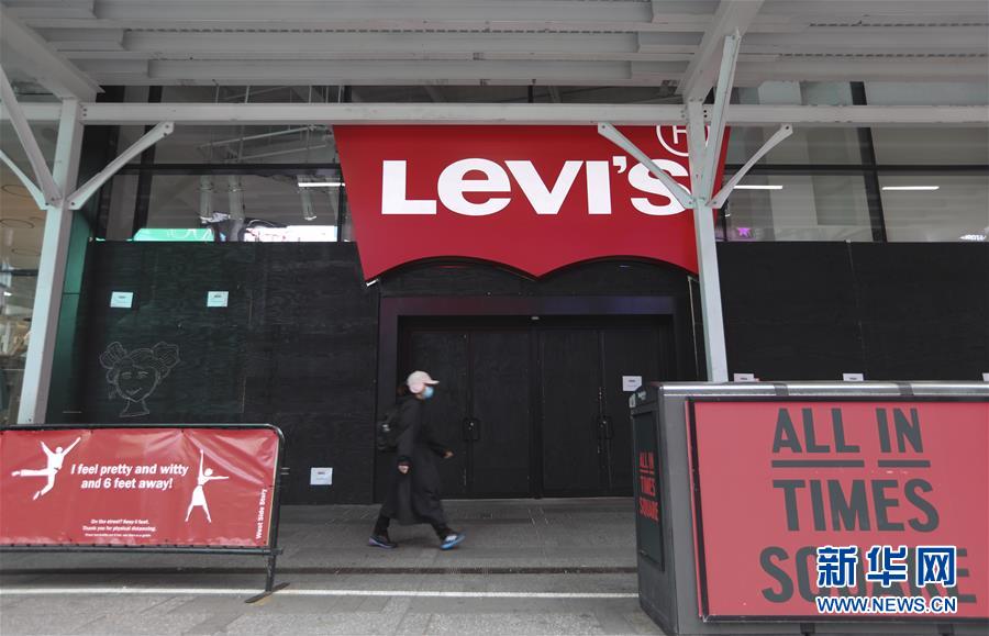11月1日,在美国纽约时报广场,一名女子从一家安装了防护板的商店旁走过。 由于担心发生骚乱带来损失,纽约不少商店和写字楼开始加强防护和安保。 新华社记者王迎摄