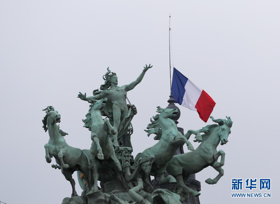 12月9日,法国巴黎大皇宫博物馆降半旗,悼念2日逝世的前总统德斯坦。