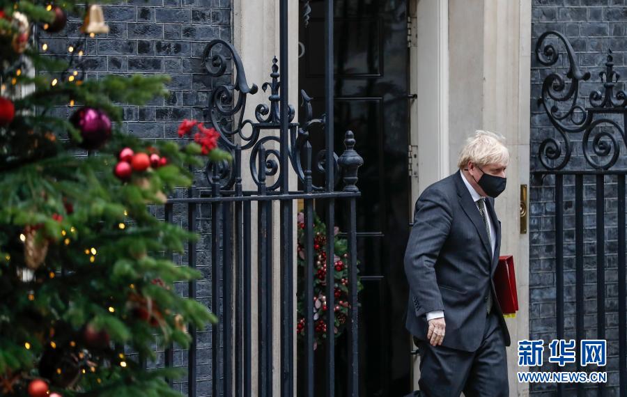 12月9日,在英国伦敦,英国首相约翰逊离开首相府前往议会。