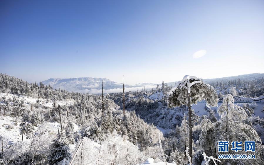 从龙苍沟国家森林公园远眺瓦屋山的景色(2021年1月2日摄)。 冬日时节,位于四川省荥经县的龙苍沟国家森林公园银装素裹,仿佛冰雪中的“童话世界”。 新华社记者 江宏景 摄