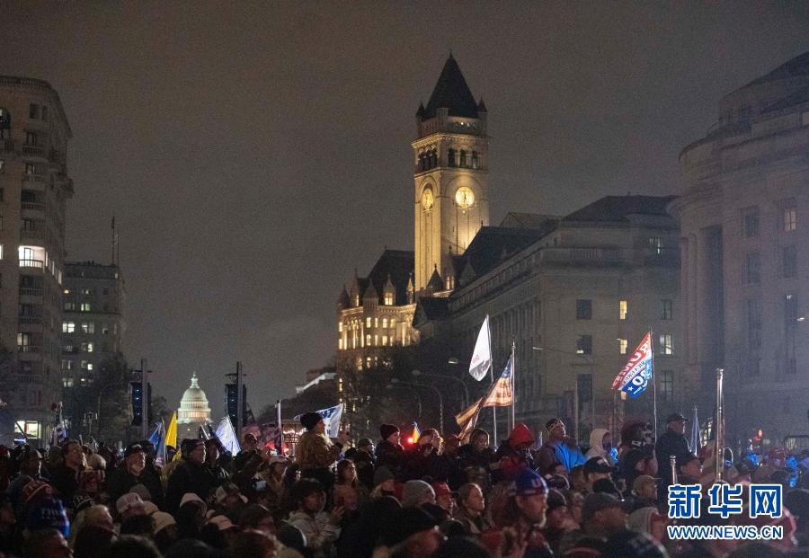 1月5日,美国总统特朗普的支持者在首都华盛顿参加集会。从5日起,上万名美国右翼选民在总统特朗普号召下,从各州赶赴华盛顿。新华社记者 刘杰 摄