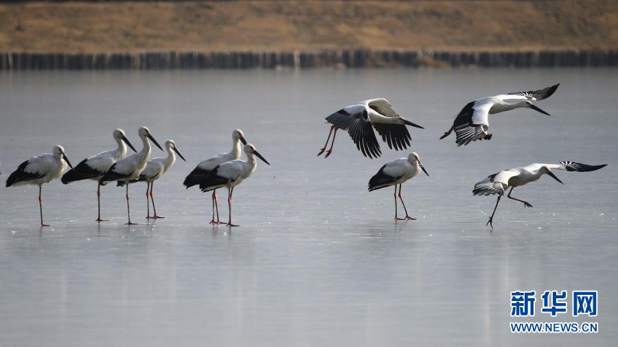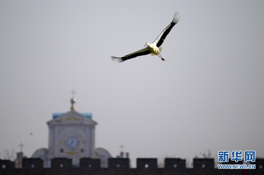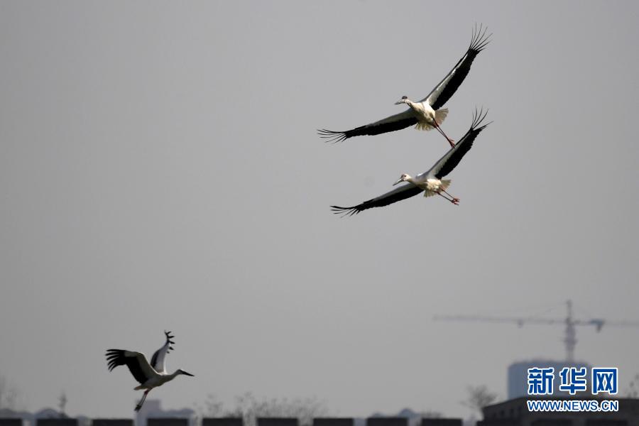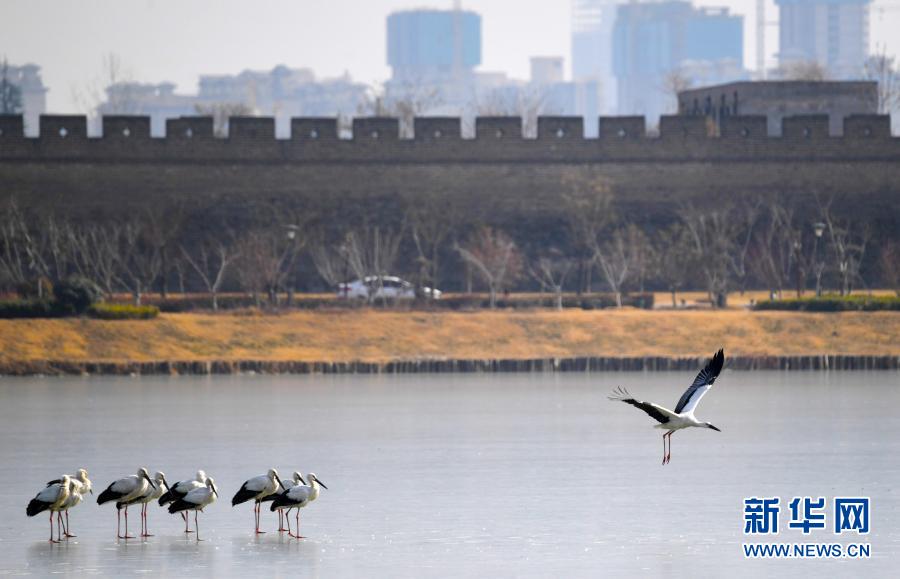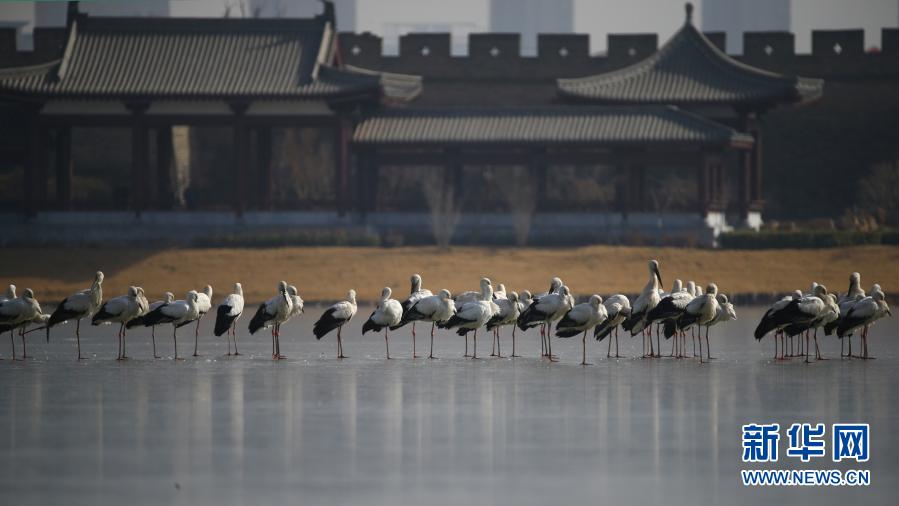 这是1月12日在商丘市南湖公园拍摄的东方白鹳。 近日,河南省商丘市南湖公园出现多只东方白鹳,吸引众多摄影爱好者和游人。东方白鹳被誉为“鸟中大熊猫”,是国家一级保护动物,国际濒危物种。 新华社记者 郝源 摄