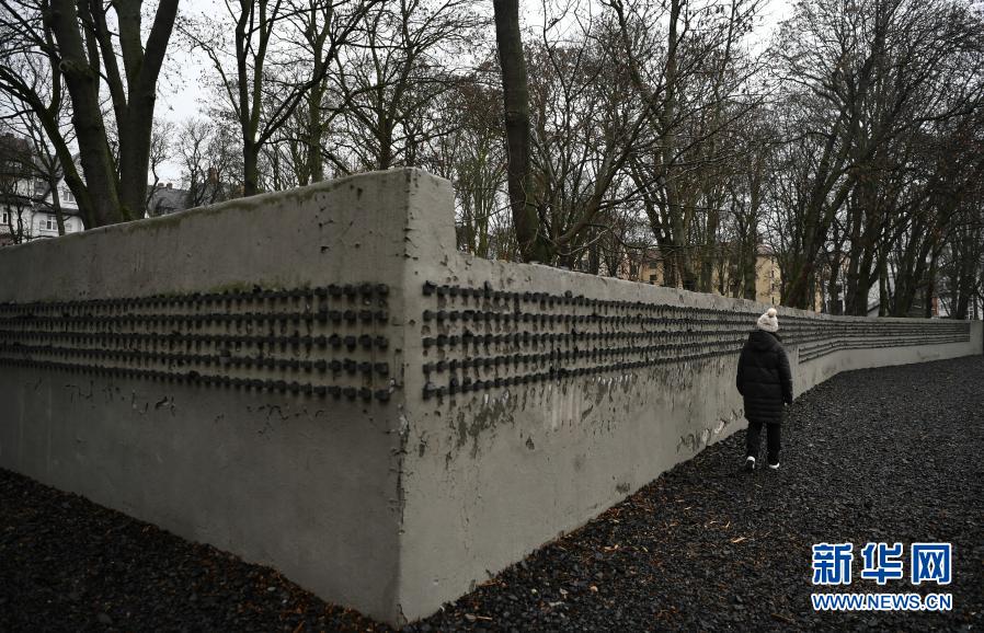 1月27日,一名行人从德国法兰克福老犹太公墓外的“姓名墙”旁经过。