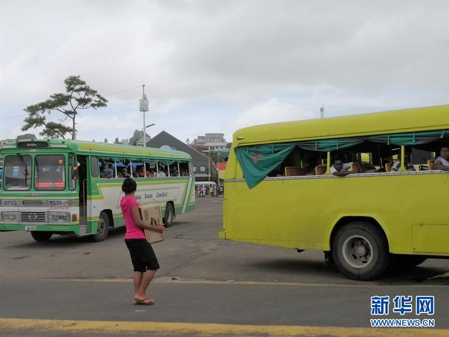 1月30日,人们在斐济苏瓦乘坐巴士。