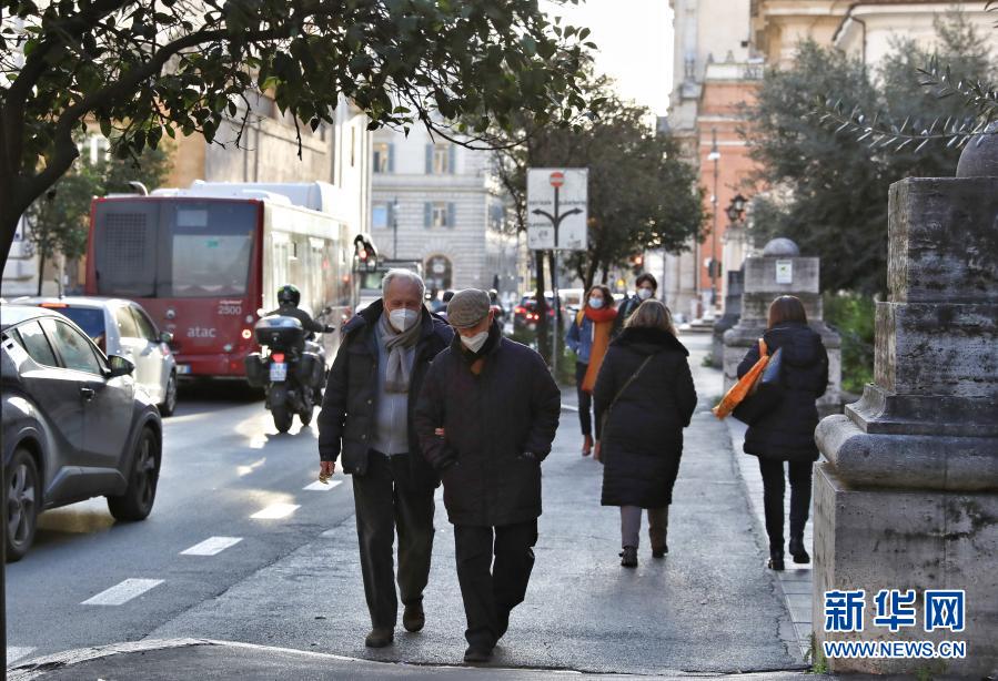 1月27日,人们戴着口罩走在意大利首都罗马街头。