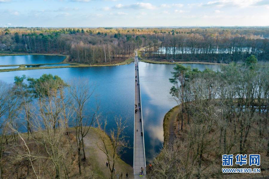 2月27日,人们在比利时小镇波克莱克附近的“水中通道”中前行(无人机照片)。