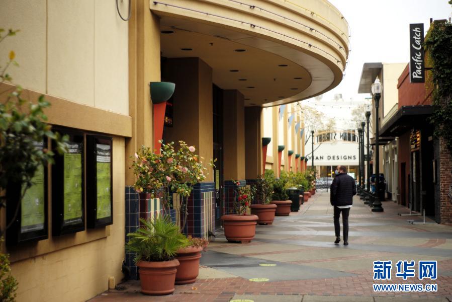 3月9日,一名男子走过美国加利福尼亚州北部小城圣马特奥商业区的电影院。