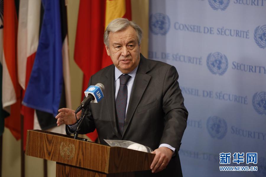 3月10日,联合国秘书长古特雷斯在纽约联合国总部举行的记者会上发言。