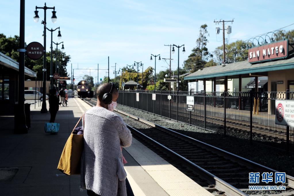 4月26日,一名女子在美国加利福尼亚州北部小城圣马特奥的火车站候车。