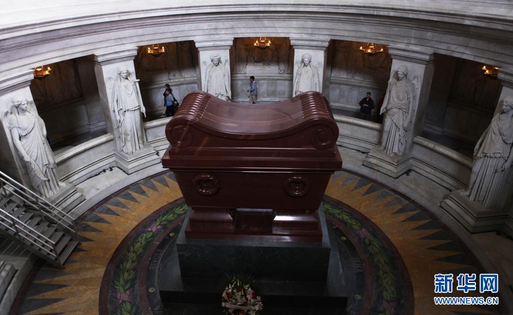 5月5日是拿破仑逝世200周年纪念日。法国总统马克龙5日在纪念活动上发表讲话说,拿破仑是法兰西历史上的重要人物,他是设计师、战略家和立法者,但在恢复奴隶制、独裁等问题上犯了一系列错误。拿破仑1769年出生于科西嘉岛,1804年创立了法兰西第一帝国。拿破仑1814年退位,随后被流放至厄尔巴岛;1815年复辟后,在滑铁卢之战中战败,被流放到圣赫勒拿岛。1821年5月5日,拿破仑在圣赫勒拿岛去世。 这是2013年5月5日在法国巴黎荣军院圆顶教堂拍摄的拿破仑墓。 新华社记者 高静 摄 |