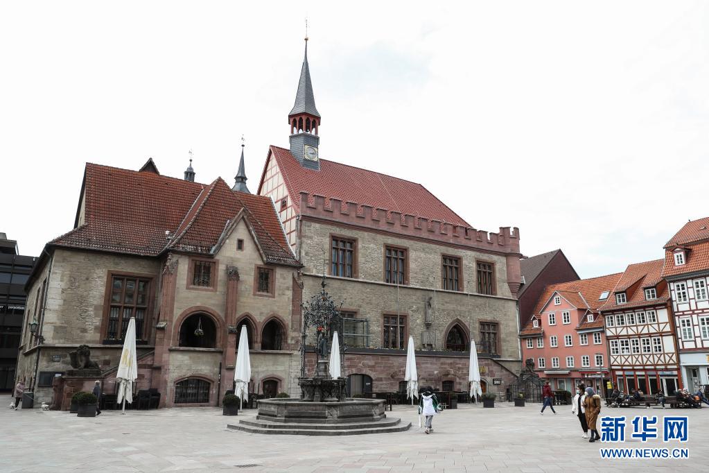这是4月16日在德国哥廷根拍摄的老市政厅。