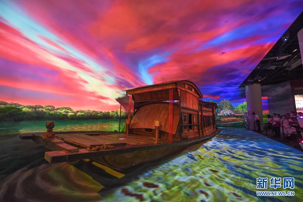 6月30日,参观者在南湖革命纪念馆内参观红船模型及多媒体场景重现。 近日,位于浙江嘉兴的南湖革命纪念馆迎来参观热潮,“红船起航”主题展览日均参观人数超过10000人次。南湖革命纪念馆基本陈列“红船起航”主题展览由“救亡图存”“开天辟地”“光辉历程”“走向复兴”4个部分组成,全面展现100年来,中国共产党带领全国人民取得革命、建设和改革伟大胜利的光辉历史。 新华社记者 徐昱 摄 |