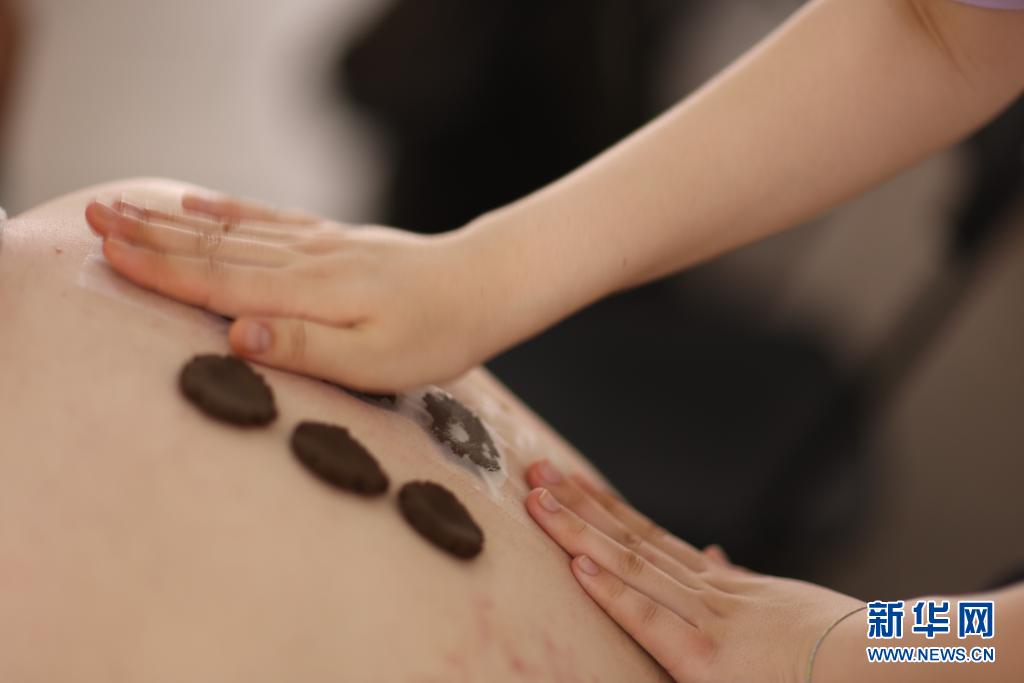 7月11日,在北京中国中医科学院广安门医院,医生为患者贴三伏贴。