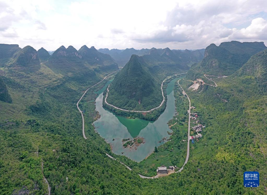这是广西都安瑶族自治县菁盛乡境内红水河两岸的公路(9月1日摄,无人机照片)。新华社记者 周华 摄