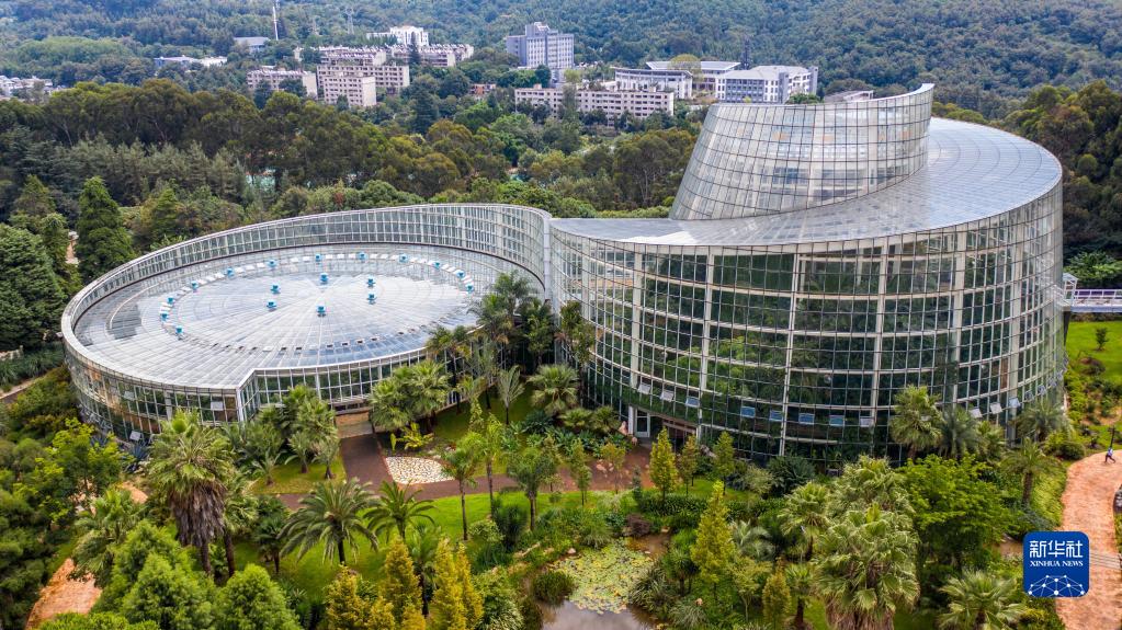 这是中国科学院昆明植物研究所昆明植物园内的“扶荔宫”生物多样性体验园一景(无人机照片,9月2日摄)。新华社记者 胡超 摄