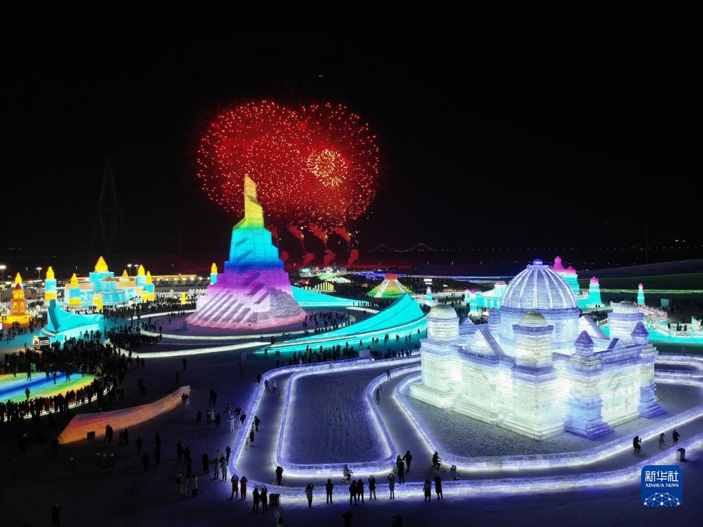 当晚,为迎接新年的到来,在第二十三届哈尔滨冰雪大世界的夜空中,上演了一场璀璨的“烟花秀”。新华社记者 张涛 摄