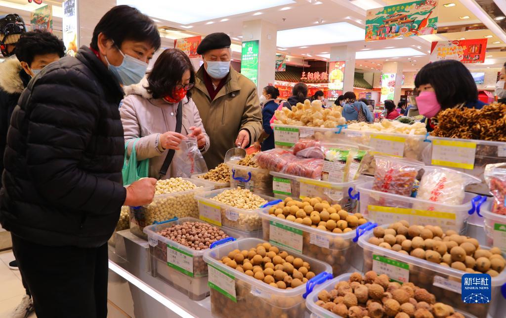 1月28日,市民在位于上海南京东路步行街上的三阳南货店内选购食品。