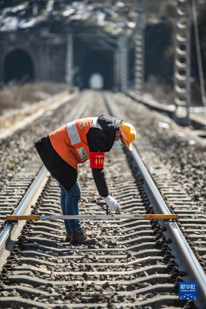 春运期间,中国铁路成都局集团有限公司六盘水工电段综合维修车间职工坚守在沪昆铁路梅花山一线。梅花山平均海拔2300多米,常伴雨雾凝冻天气,日常线路养护维修难度大。六盘水工电段职工每天步行十余公里,排查铁路线路安全隐患,保障来往列车运行安全。