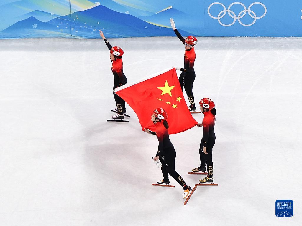 当日,在首都体育馆举行的北京2022年冬奥会短道速滑项目女子3000米接力决赛中,中国队获得季军。