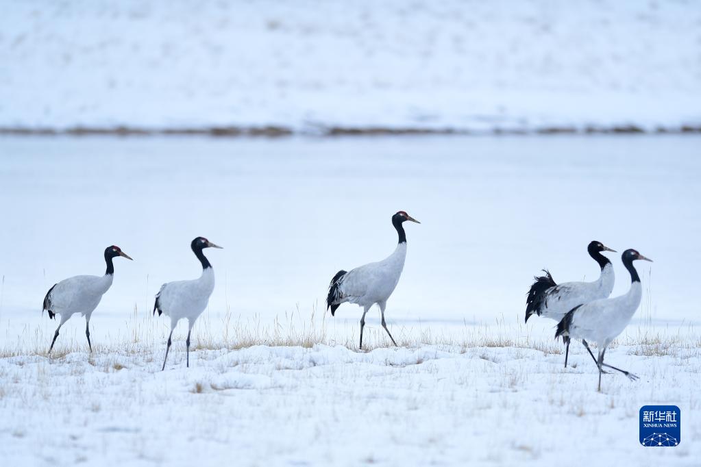 2021年10月21日在三江源国家公园黄河源园区内拍摄的黑颈鹤。