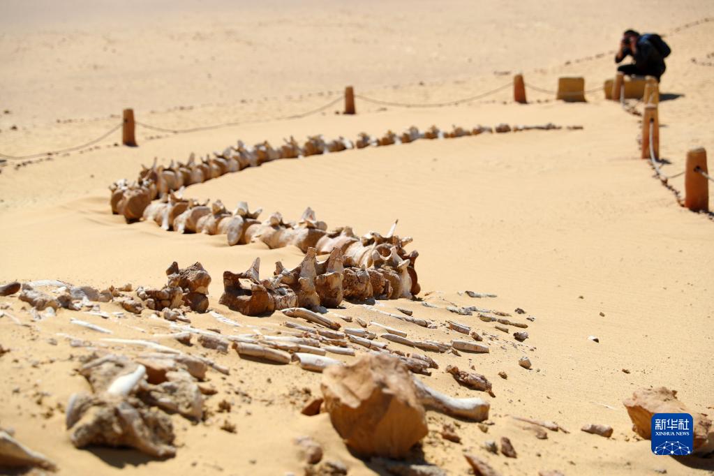 这是3月11日在位于埃及法尤姆省的“鲸鱼谷”拍摄的古鲸类化石。