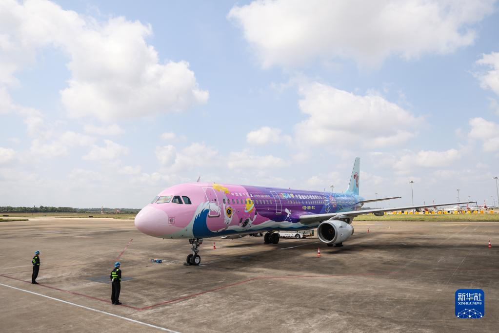 3月13日,消博会主题彩绘飞机“消博号”降落在海口美兰机场。
