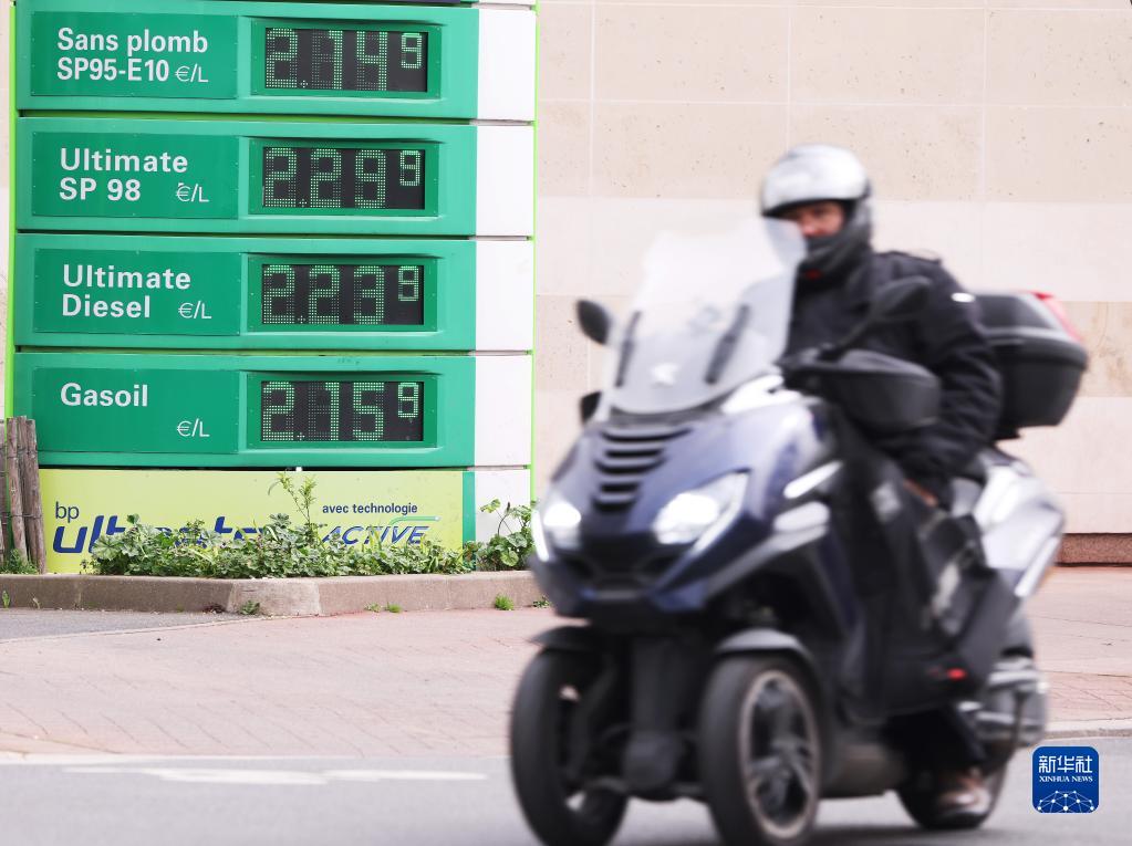 3月16日,一名男子骑摩托车经过法国巴黎一处加油站。
