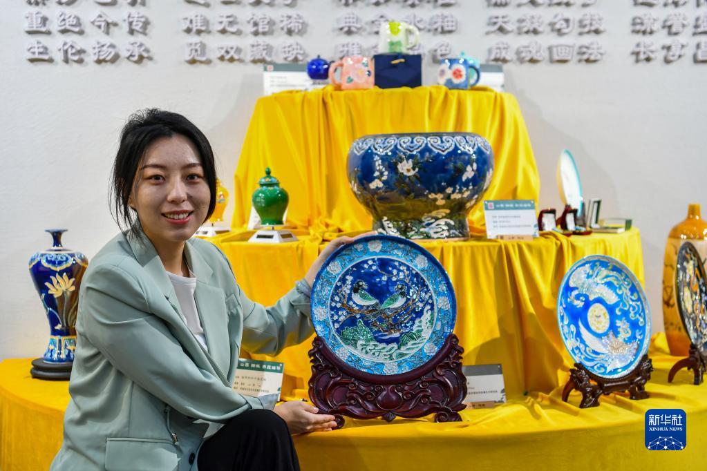 3月24日,在山西省阳城县沙坡村,乔琳展示自己制作的珐华。新华社记者 曹阳 摄