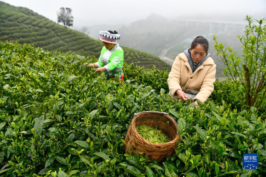 近日,贵州省贵定县云雾镇迎来“明前茶”采摘期。近年来,贵定县坚持绿色生态导向,依托高海拔、低纬度、气候湿润等优势发展优质茶产业,助力群众增收。